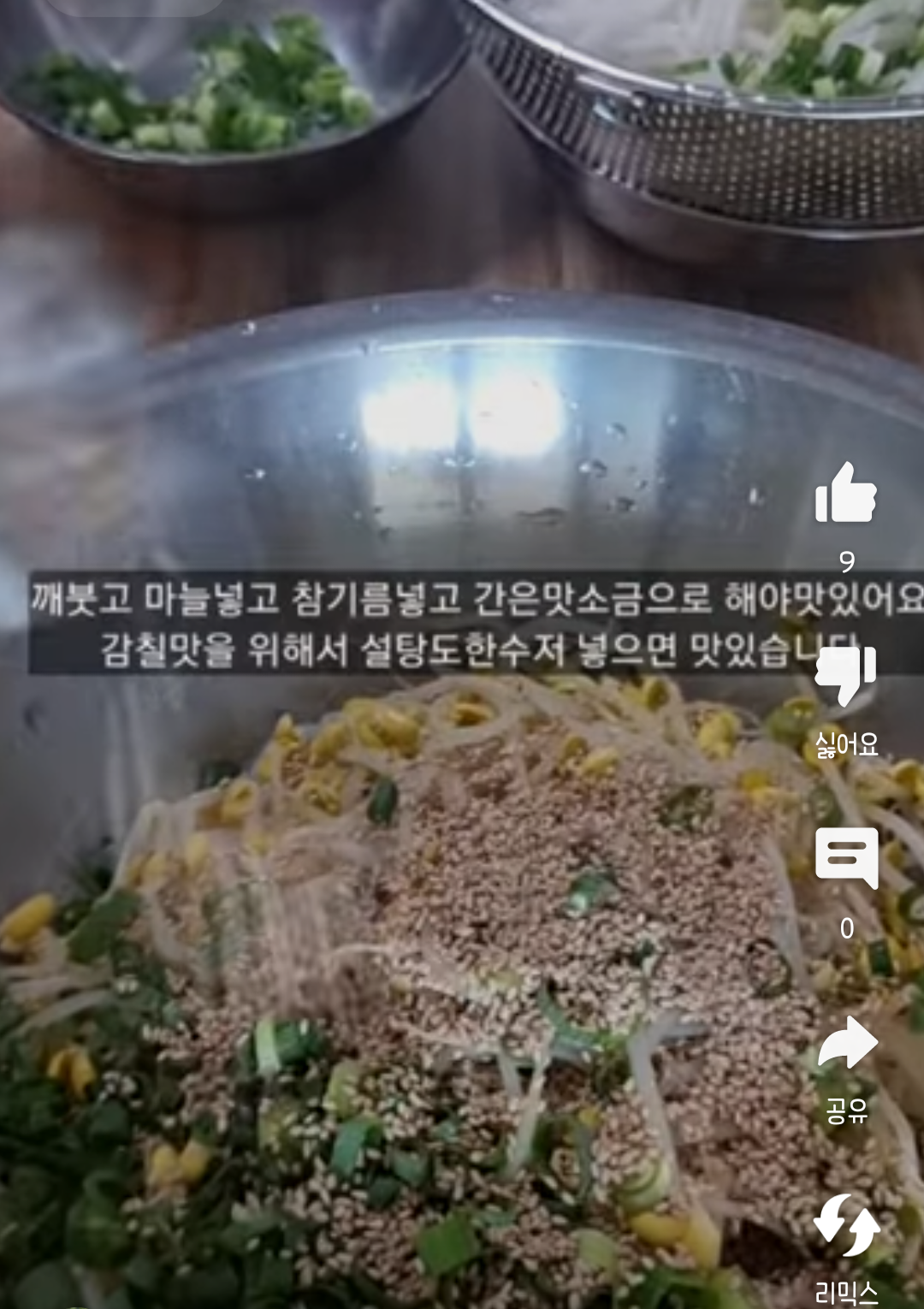 Tip. 콩나물은 버무리고 나면 물이 생겨 싱거워질 수 있어 처음부터 짠듯 하게 간을하면 좋습니다.